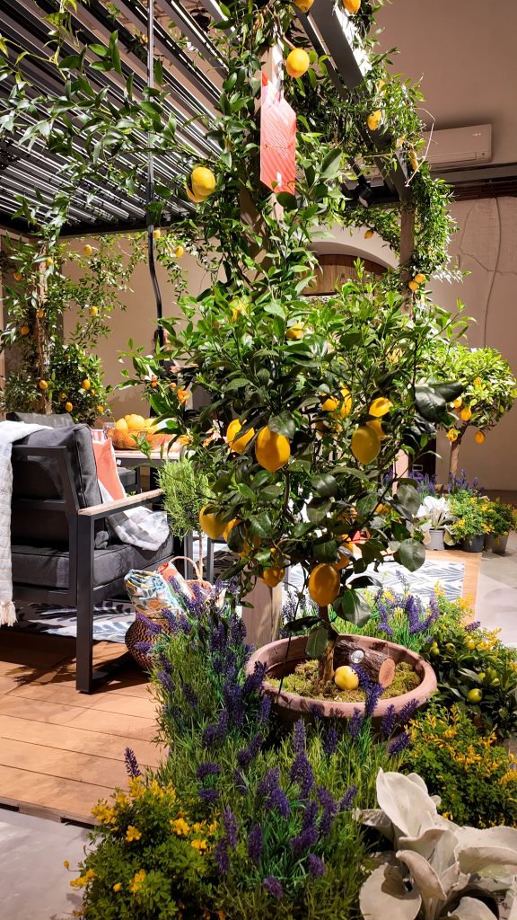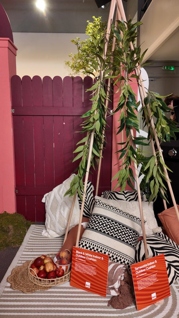 Described as a Scandi Oasis & ‘a palette of subtle cooling colours’, this was my favourite theme. I loved the natural textures and beautiful indoor/outdoor theme. The outdoor sofa set was super comfy and yet water-resistant so you dont have to panic about leaving the set out in the rain.